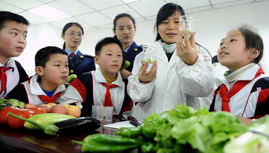 3月14日,安徽省合肥市包河区屯溪小学阳光校区的学生走进包河区食物平安检测室,和工做人员一路脱手对蔬菜样本进行食物平安检测。通过领会食物平安检测法式,孩子们对食物平安的主要性有了更深切的认识。摄影/刘军喜?。