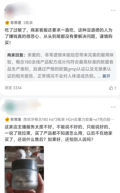 品控问题同样凸起。多位消费者向记者反馈,采办的胶囊开封后短期内呈现发黄、黏连现象,向品牌方赞扬后,却被以“个别差别”“储存不妥”为由推诿。而据供应链业内人士向记者测算,该产物原料成本不脚50元,但其单瓶售价可高达上元,此中绝大部门为营销成本。